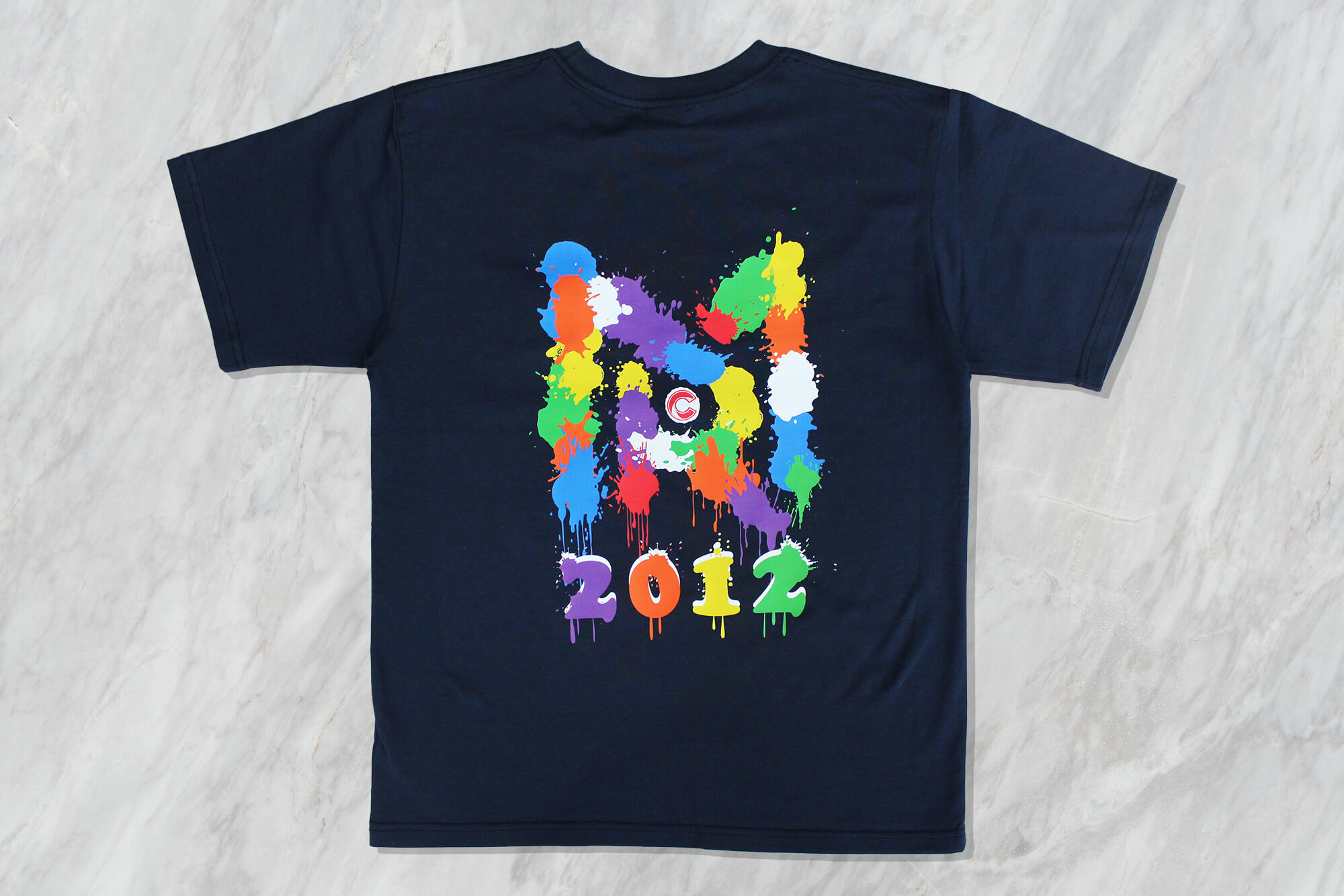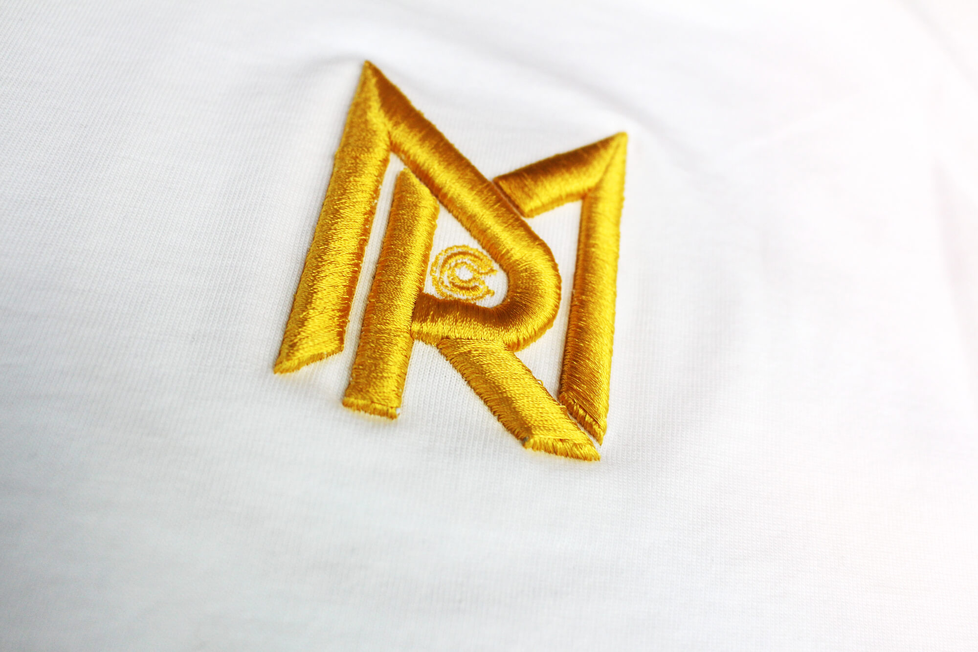 NR 這款客製化棉質 T 恤,選擇在前後運用「凸繡電繡」搭配彩色熱轉印的印刷方式,讓整件衣服在視覺與觸感上都更有層次。