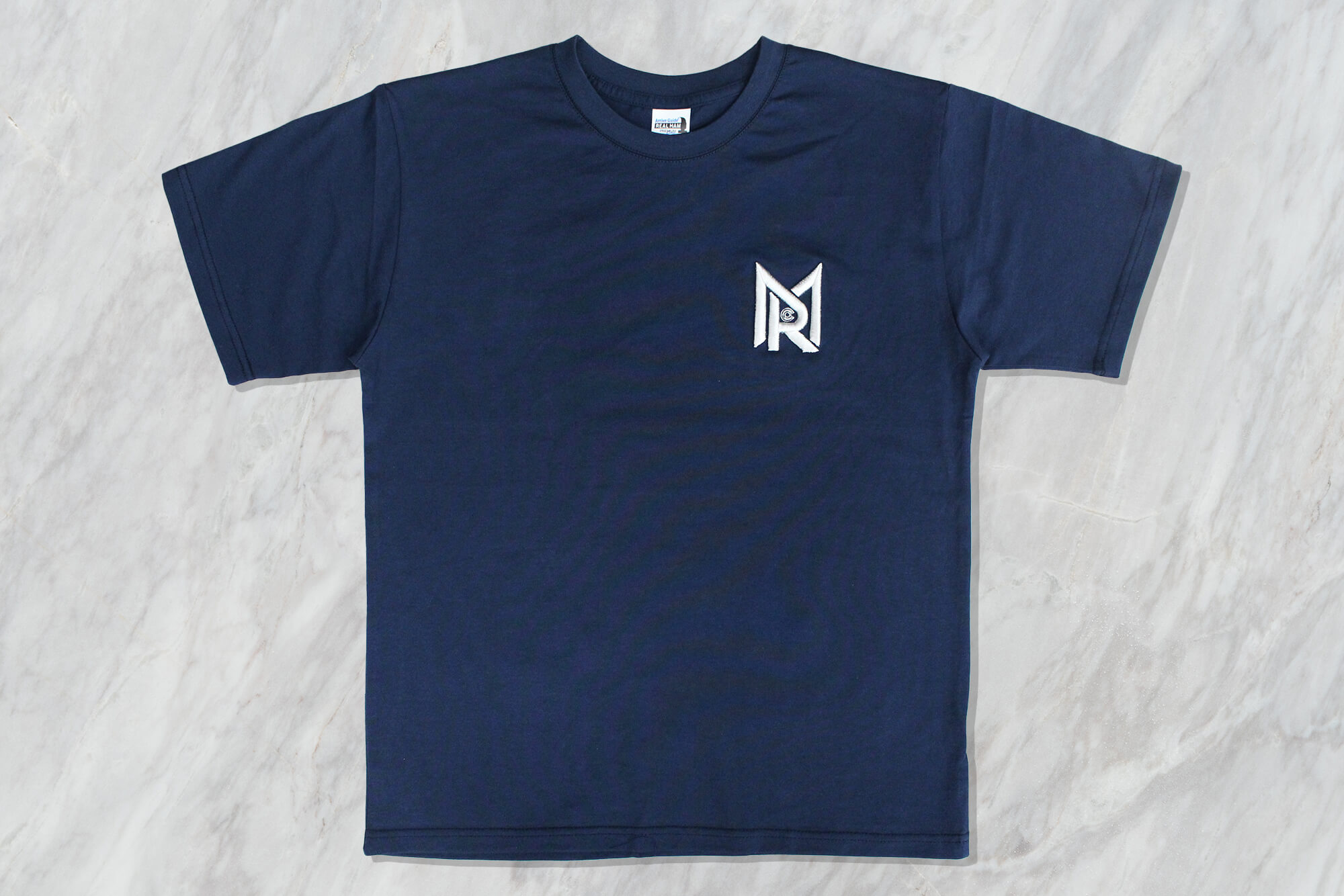 藍色與白色棉 T 作為基底,色調搭配上就很清爽俐落,再加上電繡的存在感,讓設計更聚焦又耐看,這類做法特別適合重視細節與質感設計的你~